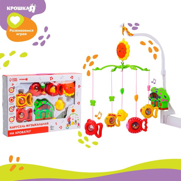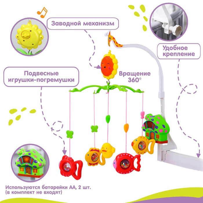 Мобиль музыкальный на кроватку «Пряничный Домик. Рыбки», заводной, Крошка Я