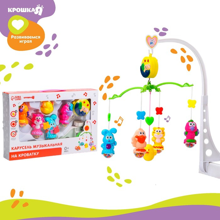Мобиль музыкальный на кроватку «Милый малыш. Зверятки», заводной, Крошка Я