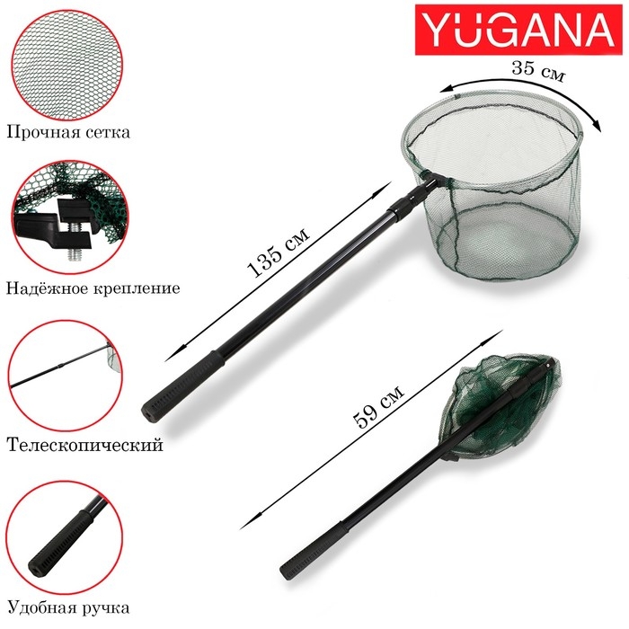Складной телескопический подсачек с прочной рукояткой и сачком из прорезиненного полиэстера. Сетка из такого материала меньше травмирует рыбу и минимизирует запутывание в ней крючков. Голова подсачека обладает положительной плавучестью, что облегчает процесс подсачивания рыбы и позволяет не потерять подсачек в случае, если он выпадет из лодки.