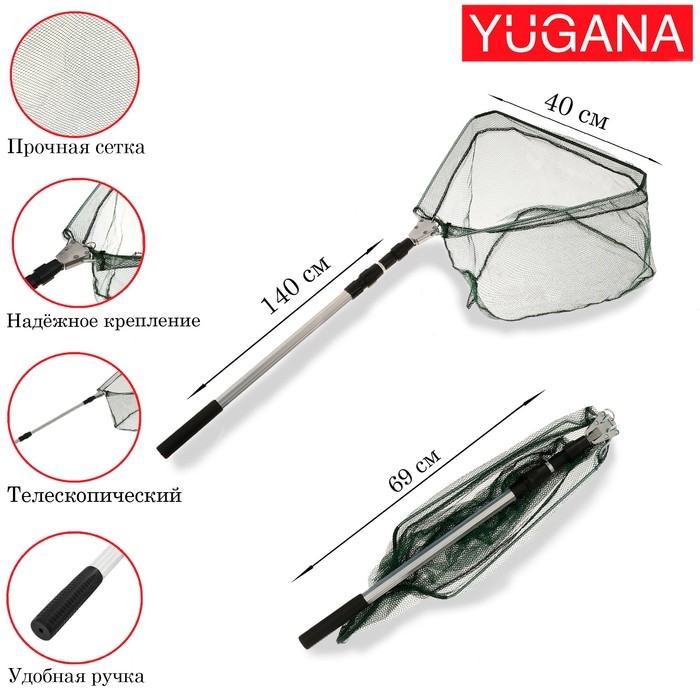 Подсачник складной телескопический П-14, 170 см, треугольный обод 40 см, капрон