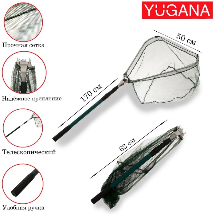 Подсачник складной телескопический П-14, 170 см, треугольный обод 40 см, капрон