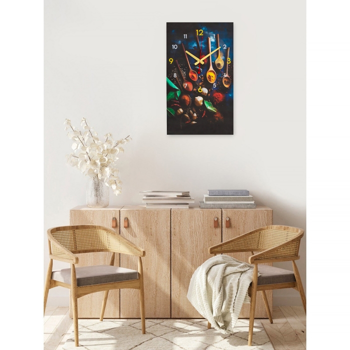 Часы-картина настенные интерьерные для кухни "Разноцветные ложки", бесшумные, 35 х 60 см