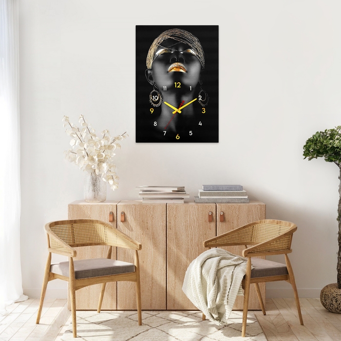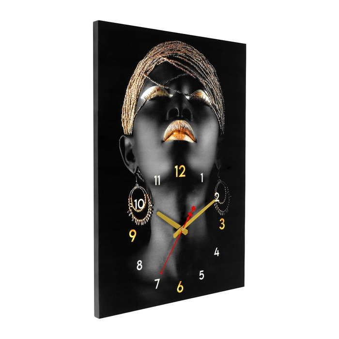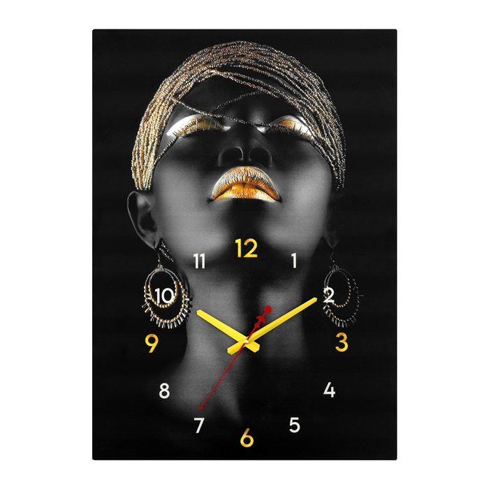 Часы-картина настенные интерьерные "Девушка черное золото", бесшумные, 50 х 70 см