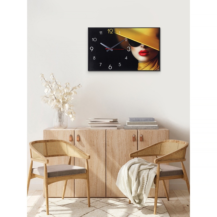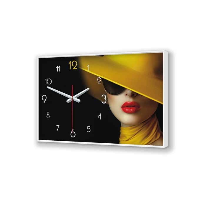 Размер часов: 57 х 35 см. Толщина 4 см. Часы выполнены на холсте, который не выцветает на солнце, не деформируется под влиянием повышенной влажности или перепадов температуры. Подрамник выполнен из ДВП - крепкого, экологически чистого материала. Качество сборки препятствует провисанию полотна со временем. Используется HD печать для высокой детализации изображения. У часов простая система креплений. Часы идут без стекла, с открытой стрелкой. Благодаря глубокой раме 4 см. часы можно просто поставить на комод или полку прислонив их к стене, как настольные часы. Механизм бесшумный, батарейка формата АА в комплект не входит. Тип индикации - арабские цифры, что делает время на часах четко видимым и легко читаемым. Упакованы в картонную коробку с комплектом креплений.