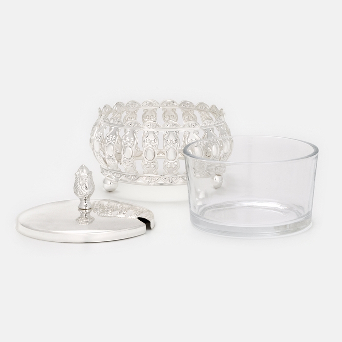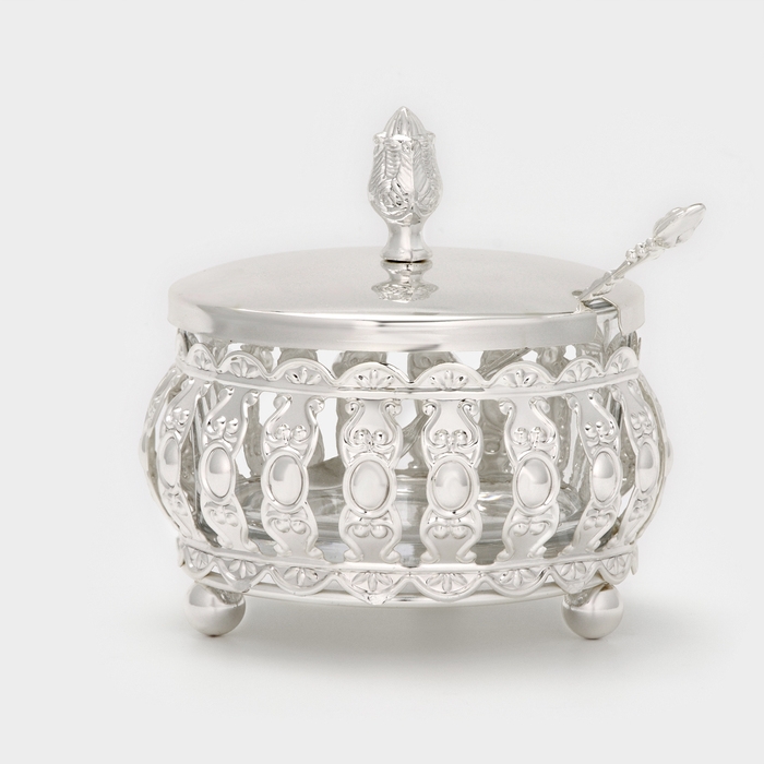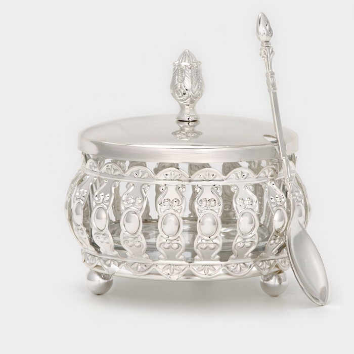 Сахарница металлическая «Ажур» с ложкой, 200 мл, 10×10 см