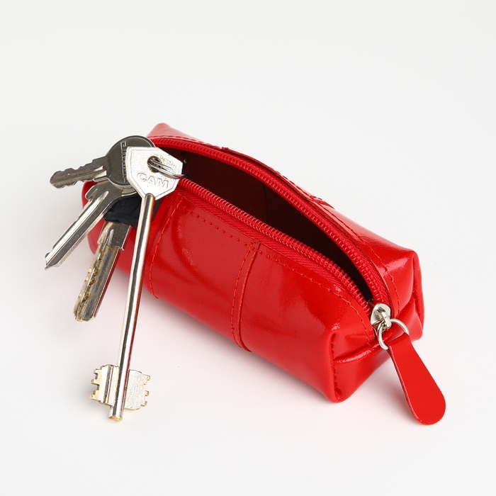 Молния надёжно закрывает ключницу, защищая содержимое от случайных повреждений и потерь, а кольцо для ключей позволяет удобно их организовать.