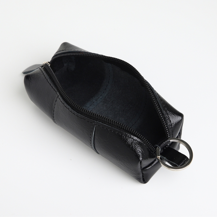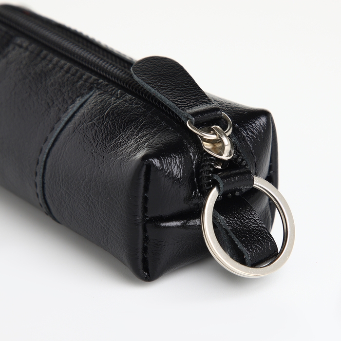 Ключница карманная на молнии, TEXTURA, длина 12,5 см, кольцо, цвет чёрный