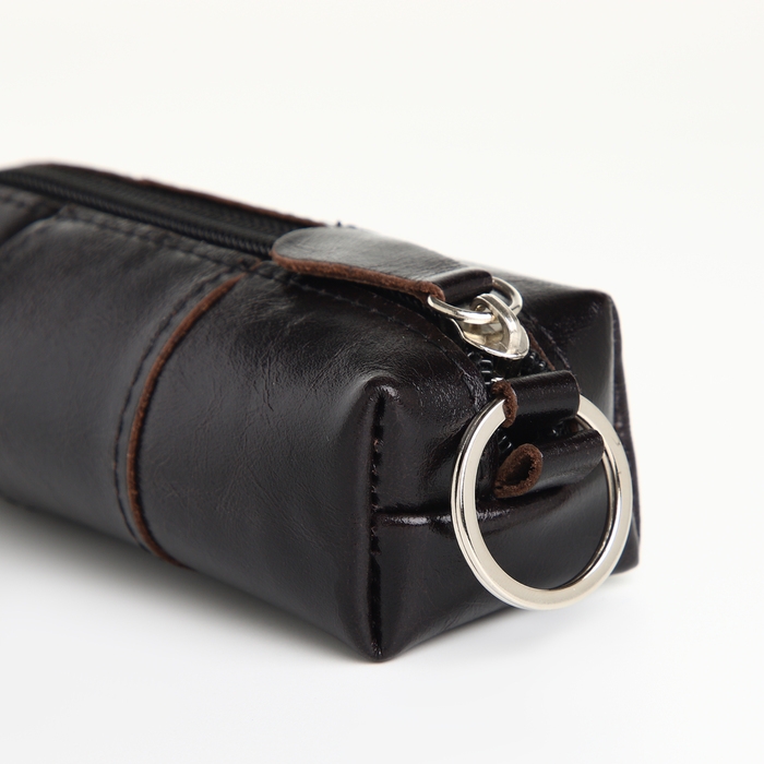Ключница карманная на молнии, TEXTURA, длина 12,5 см, кольцо, цвет чёрный