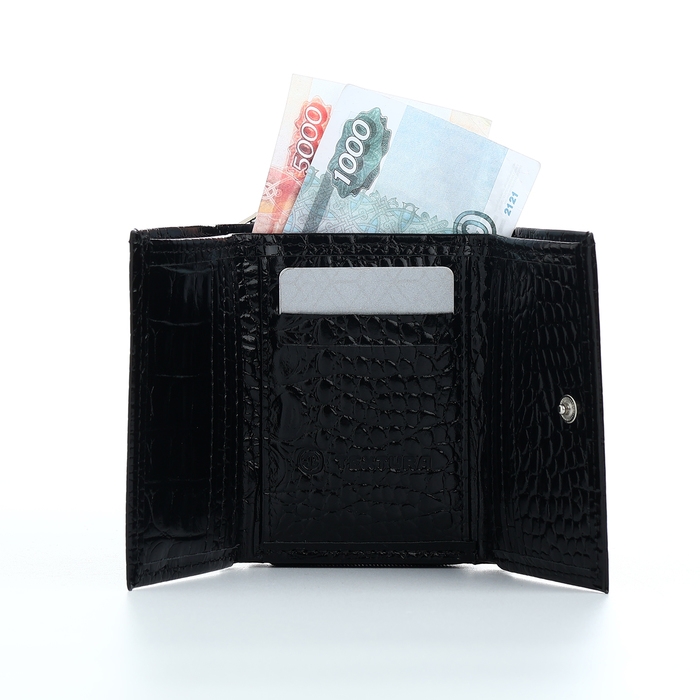 Кошелёк женский на молнии, TEXTURA, цвет чёрный