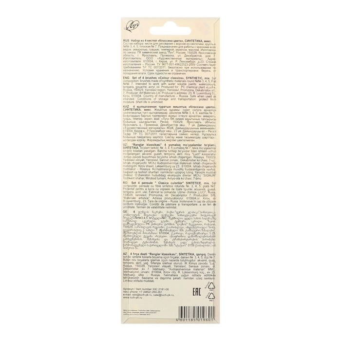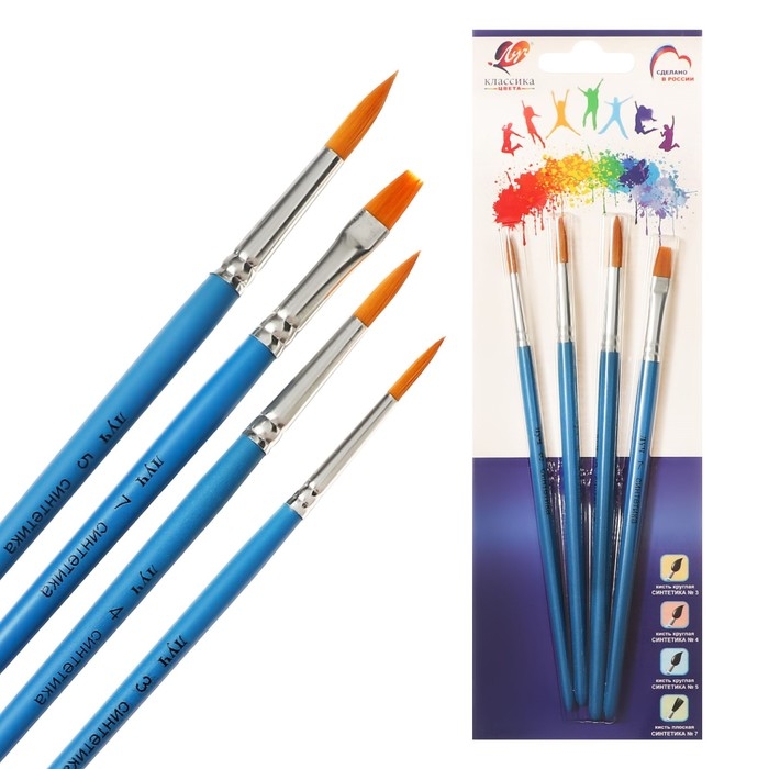 Набор кистей Синтетика 4шт Луч "Классика цвета", (круглые № 3, 4, 5; плоская № 7)
