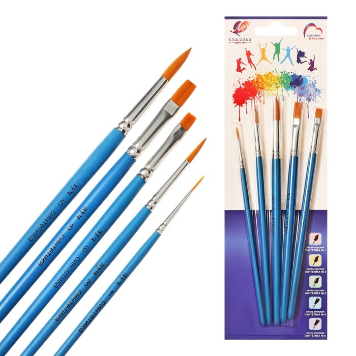 Набор кистей Синтетика 5шт Луч "Классика цвета", (круглые № 1, 3, 5; пл № 6, 8)