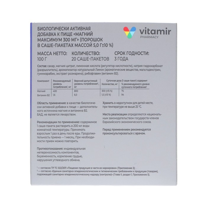 Магний максимум 300 мг Витамир, 20 стик-пакетов