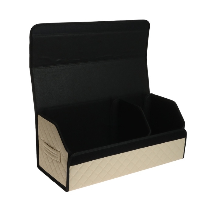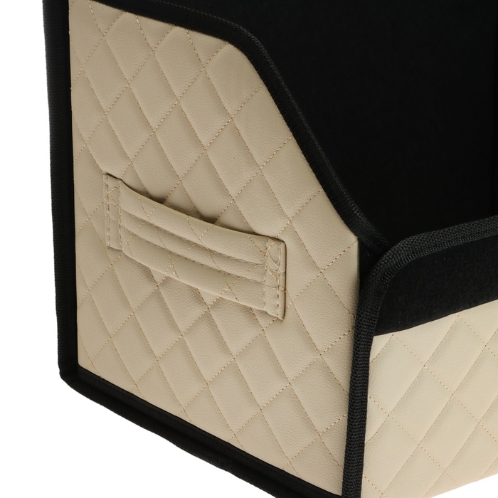 Органайзер кофр в багажник автомобиля Cartage саквояж, экокожа стеганая, 70 см, бежевый