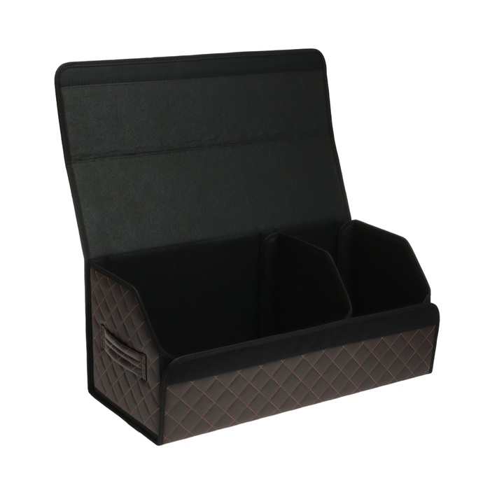 Органайзер кофр в багажник автомобиля Cartage саквояж, экокожа стеганая, 70 см, коричневый
