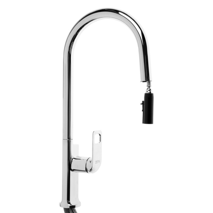 Смеситель для кухни ZEIN Z3784, однорычажный, вытяжной излив, аэратор 2 режима, хром