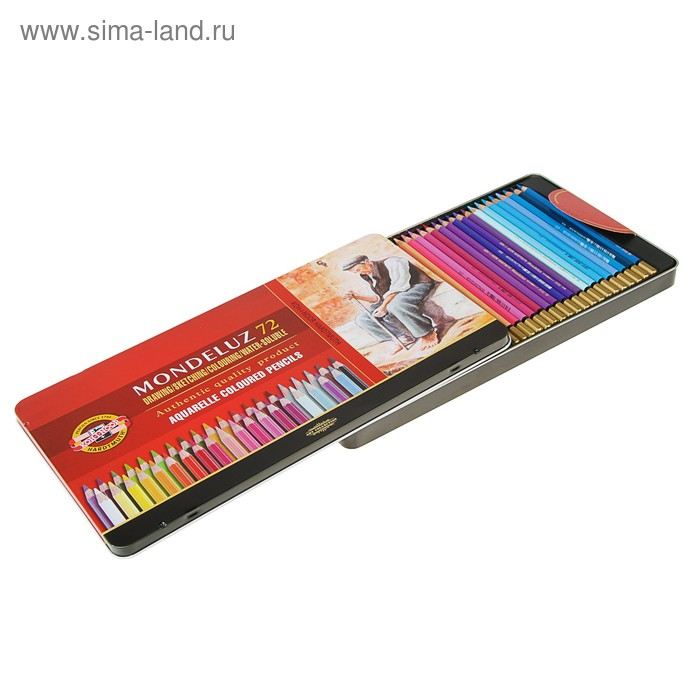 Карандаши акварельные набор 72 цвета, Koh-I-Noor Mondeluz 3727, в металлическом пенале