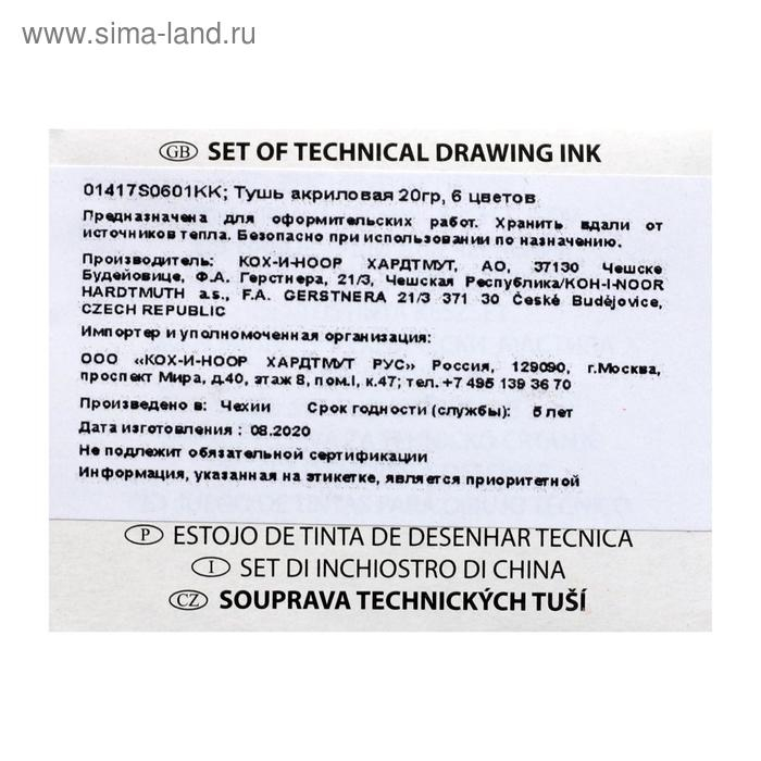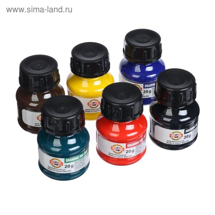 Набор цветной туши Koh-I-Noor, 6 цветов в тубах по 20 мл, картонная упаковка