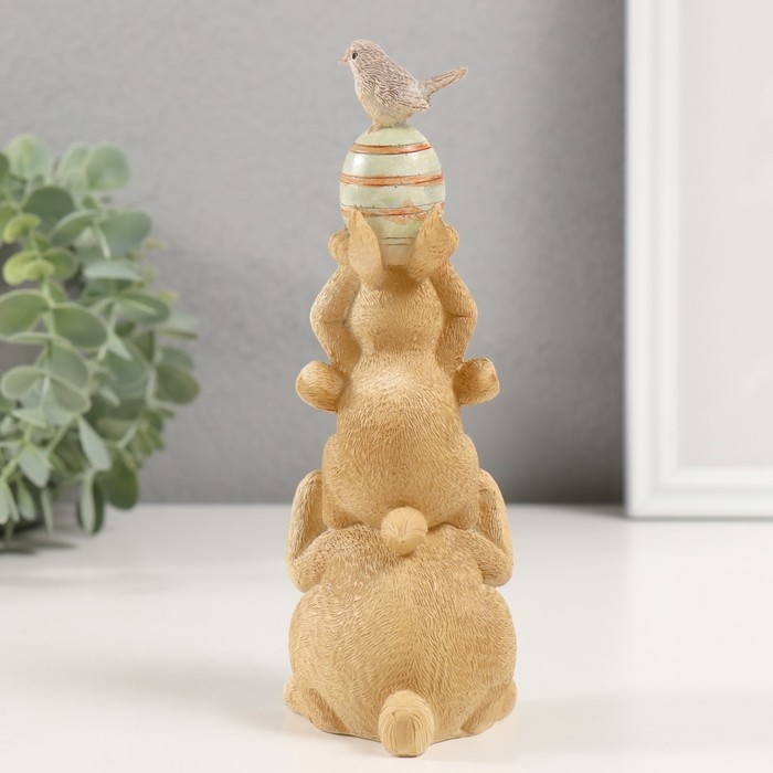 Сувенир полистоун "Пирамидка - Зайчики с пасхальным яичком и птичкой" 8,5х6х17,5 см