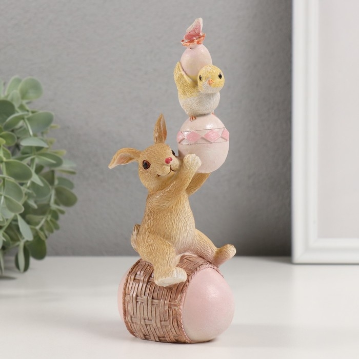 Сувенир полистоун "Зайка с пасхальными яичками и цыплёнком" 7,5х6х19,5 см