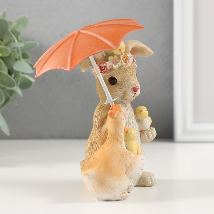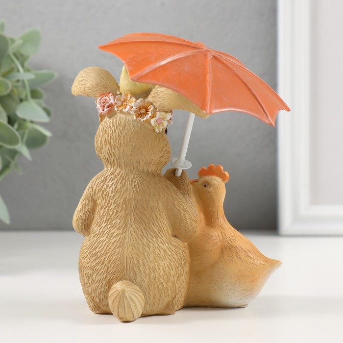 Сувенир полистоун "Встреча на Пасху под зонтиком" 11х8,5х12,5 см