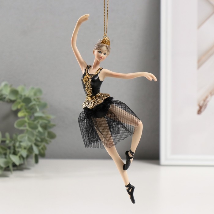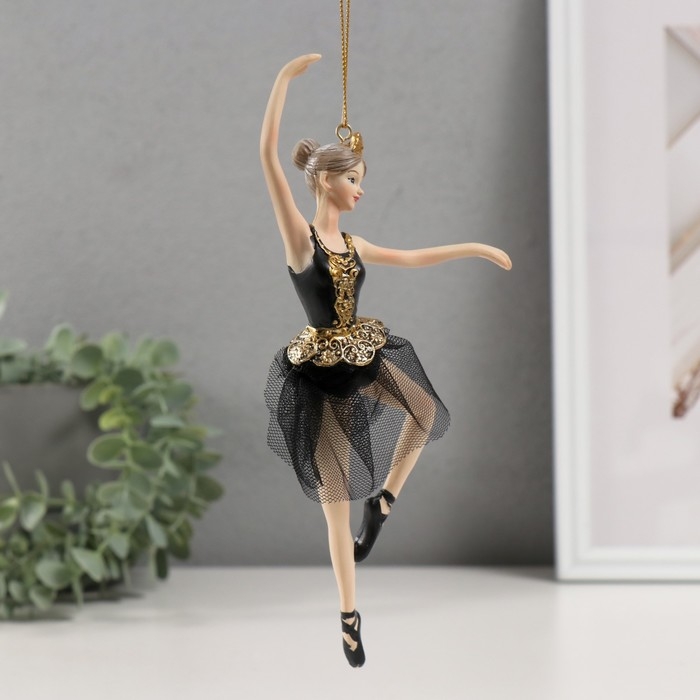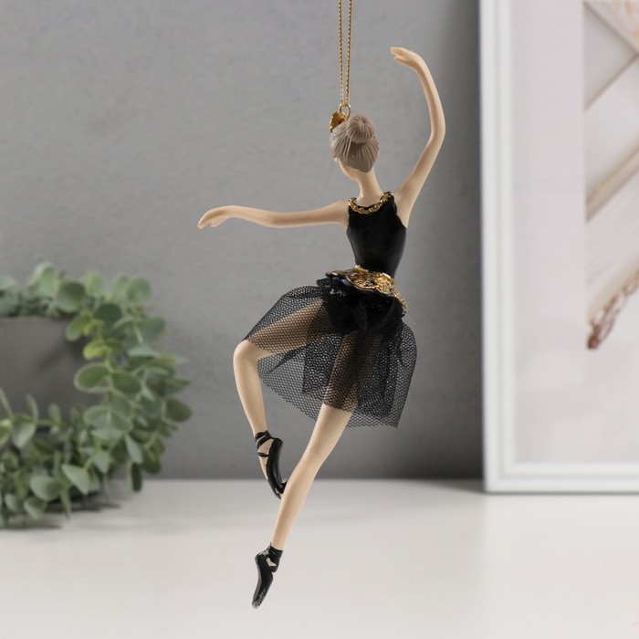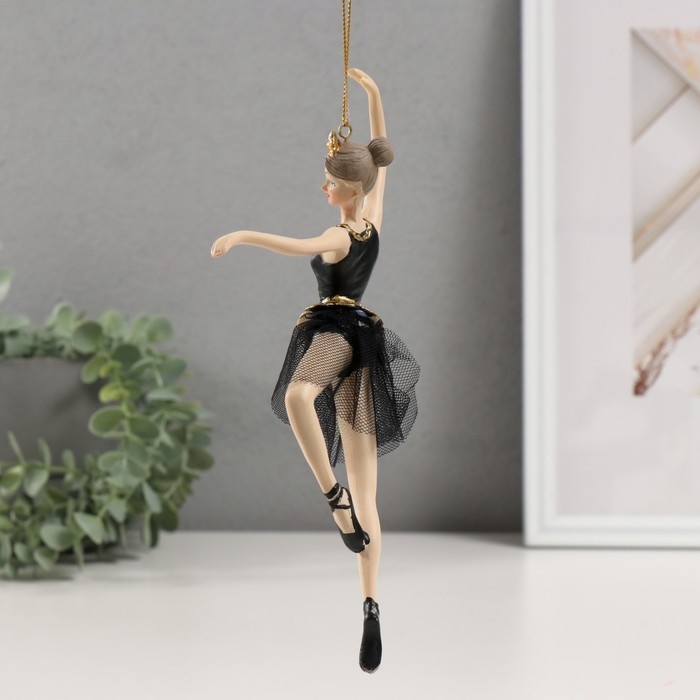 Сувенир полистоун подвеска "Балерина в черном платье - балетное па" 9х4х21,5 см