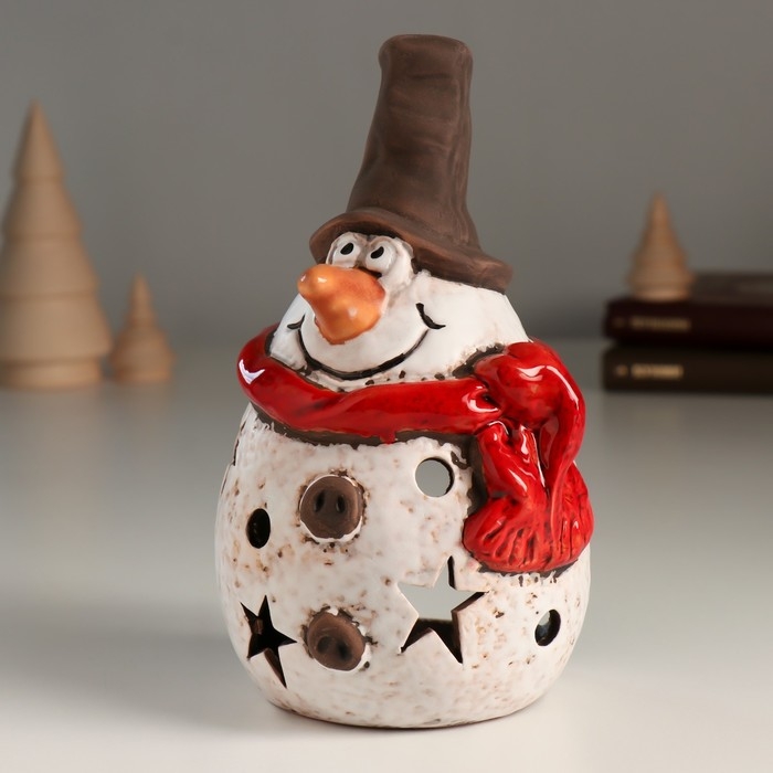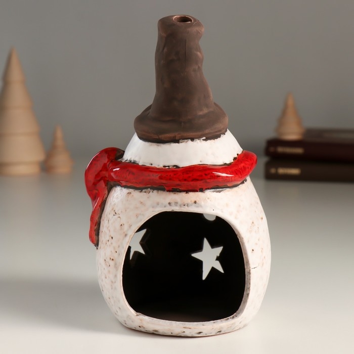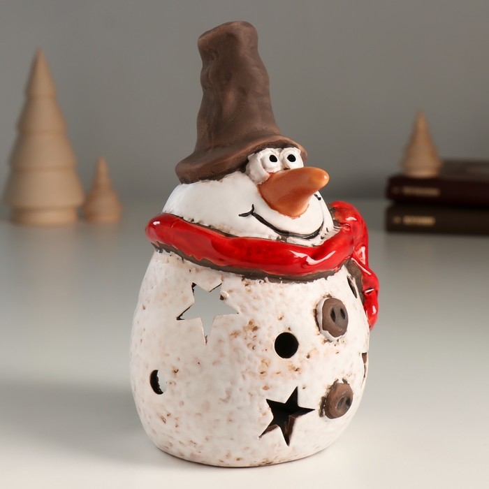 Подсвечник керамика на 1 свечу "Пухлый снеговичок со звёздочками" 8,9х10,2х16,3 см