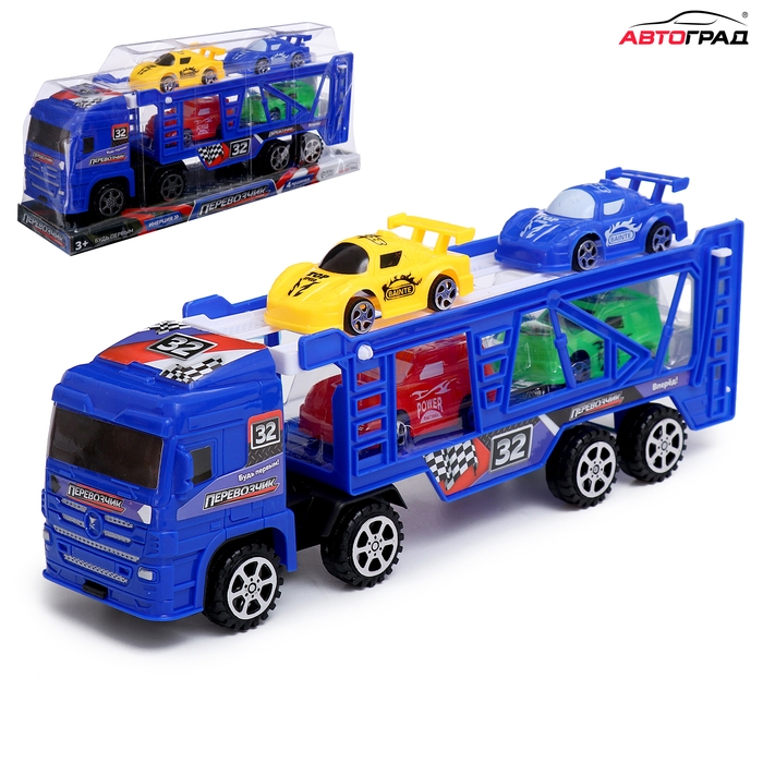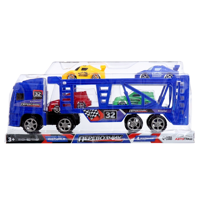 Грузовик «Автовоз», инерционный, с 4 машинами, цвет синий