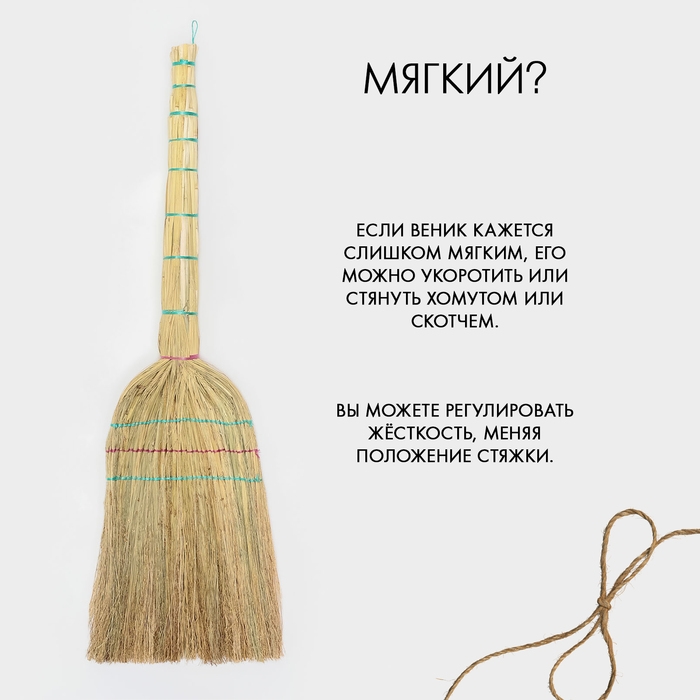 Веник 3-х прошивной «Сорго», усиленный, с петлей, 350 гр, 95 см