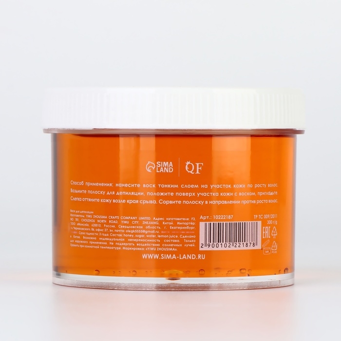Воск для депиляции, холодный, 300 гр, с ароматом мёда