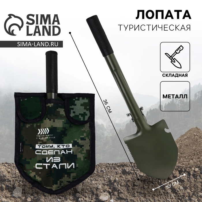 Лопата туристическая, складная «Крутому мужику», 36 х 10 см., металлический черенок с ручкой, в чехле