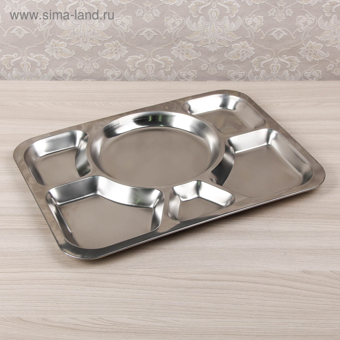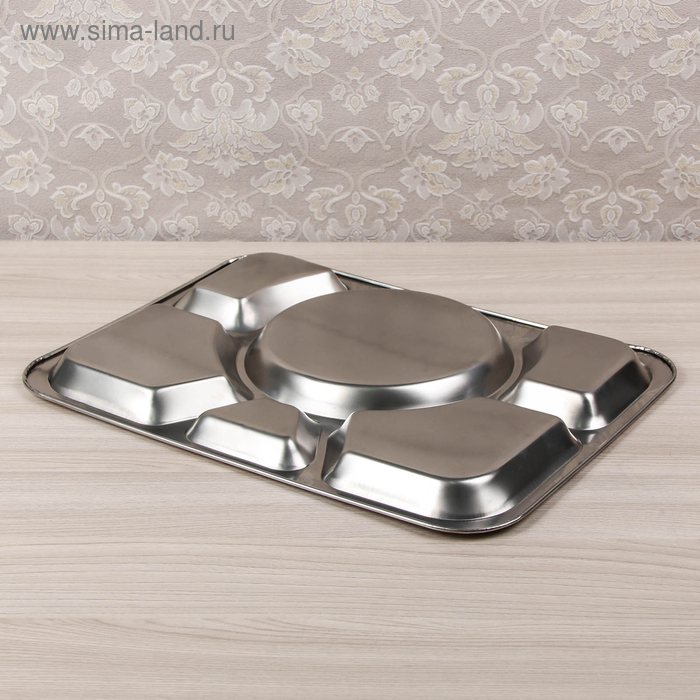 Поднос из нержавеющей стали, 6 секций, 39,5×29×1,5 см, цвет серебряный
