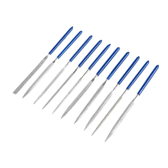 Набор надфилей алмазных ТУНДРА, обрезиненные рукоятки, 70 х 140 х 3 мм, 10 шт.
