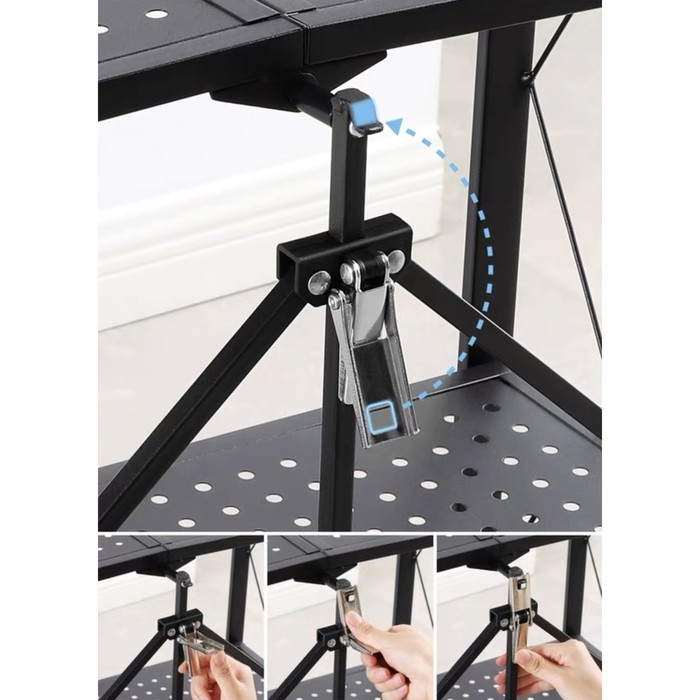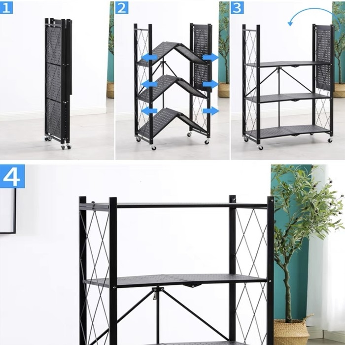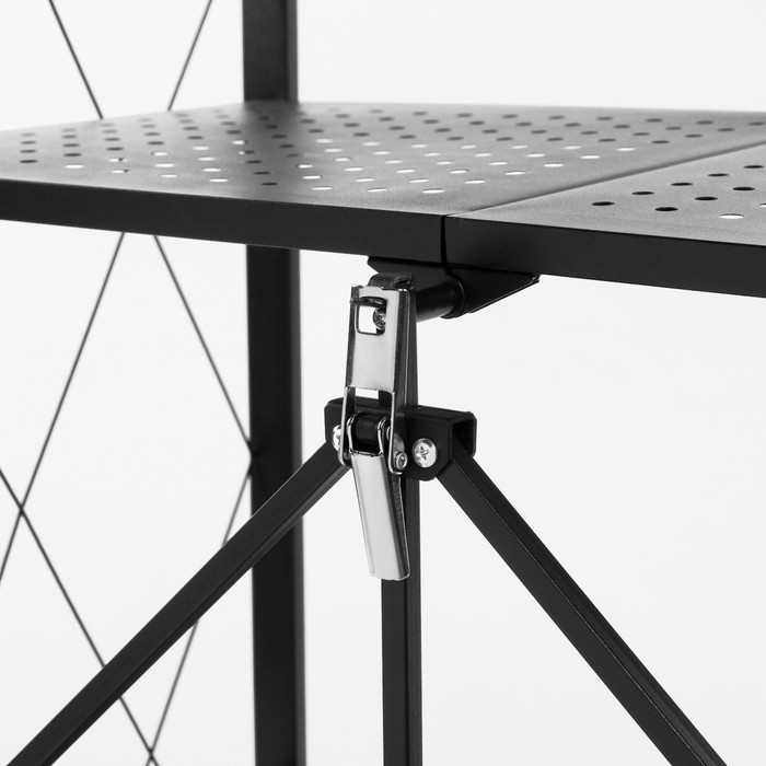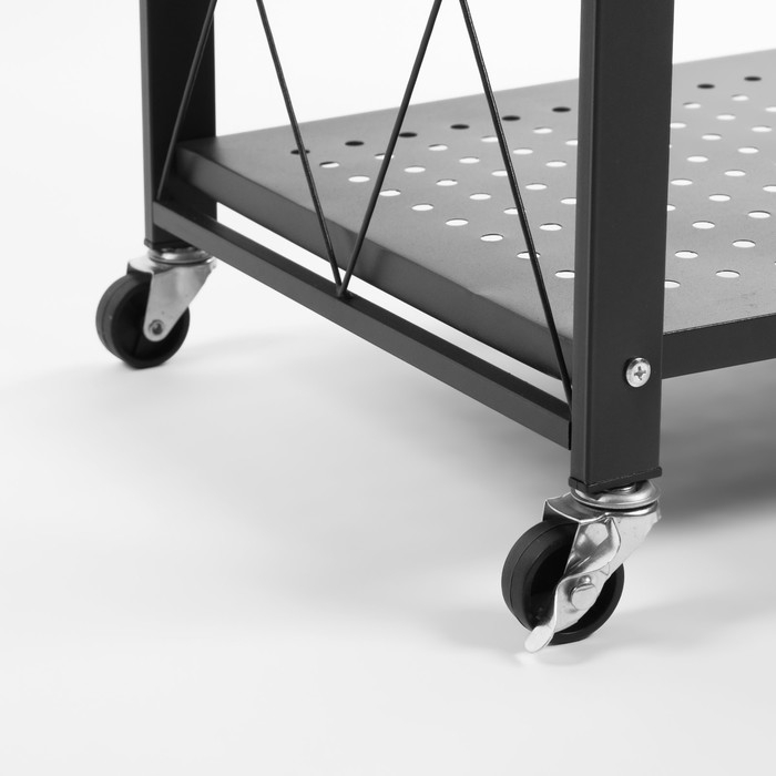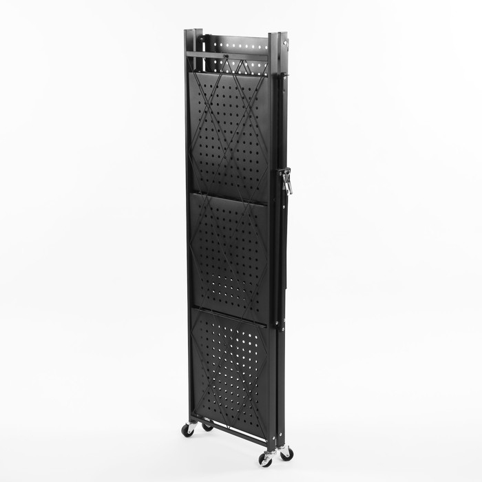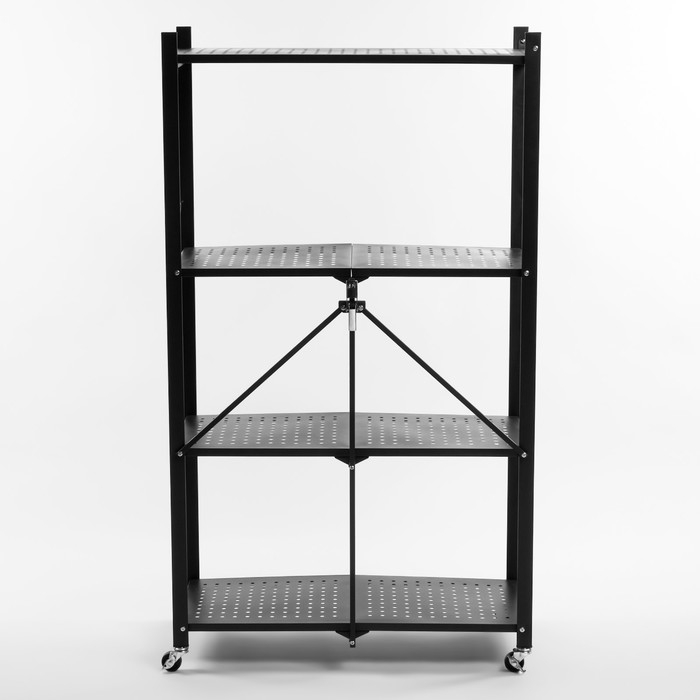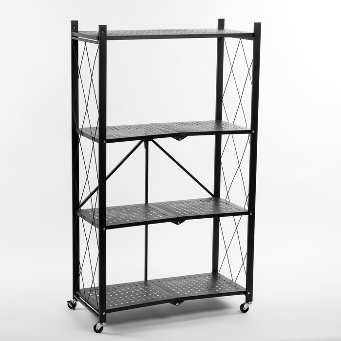 Стеллаж складной на колесах, 4 полки, 72×34×122см, цвет чёрный матовый