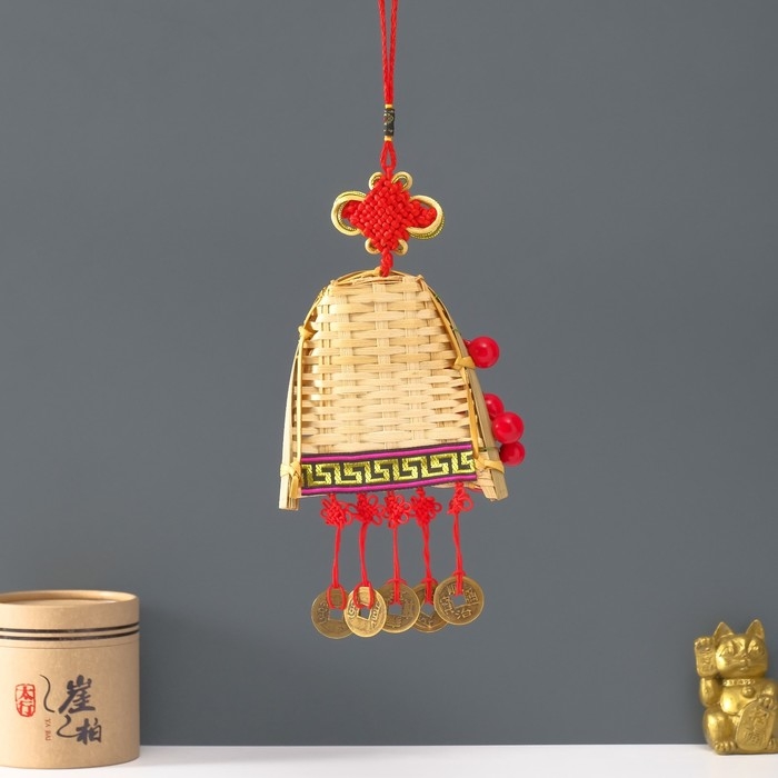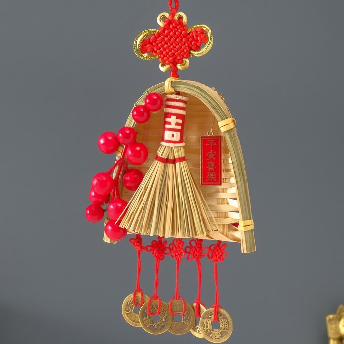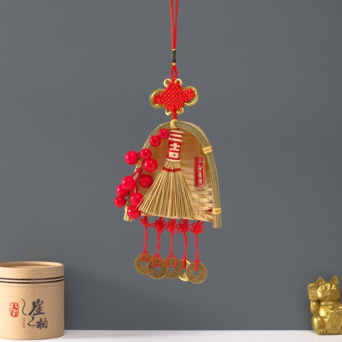 Подвеска "Талисман. Веник на совке с 5-ю монетками и узлом счастья" 10х30 см
