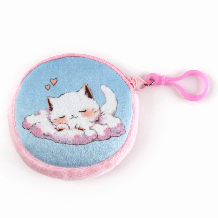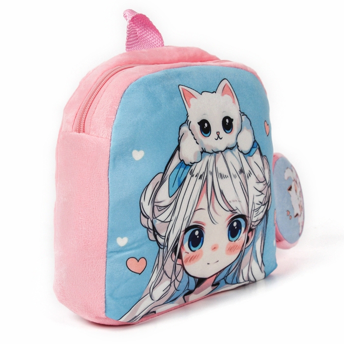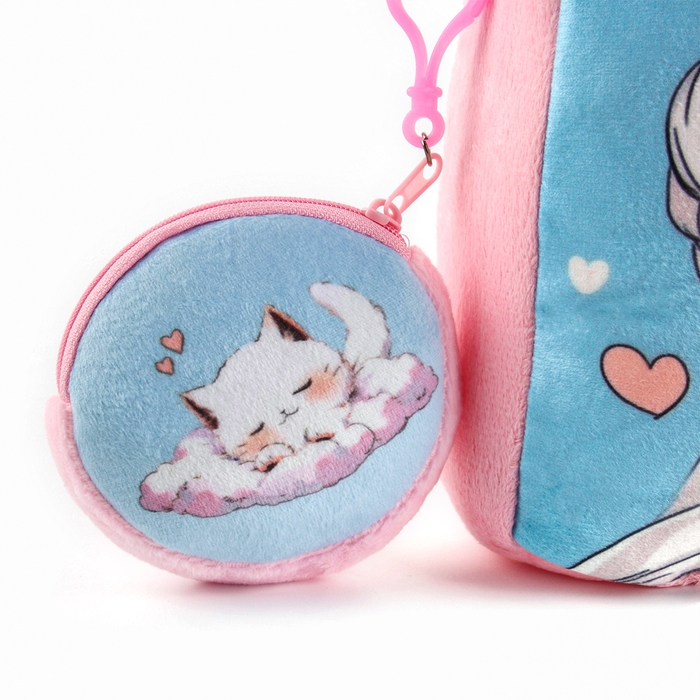 Рюкзак детский плюшевый с кошельком "Девочка с котиком", 24*24 см, цвет розовый