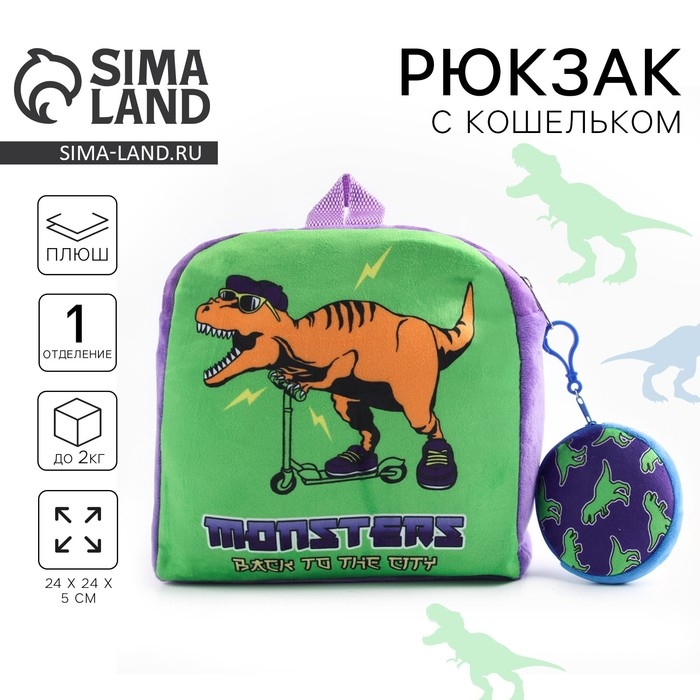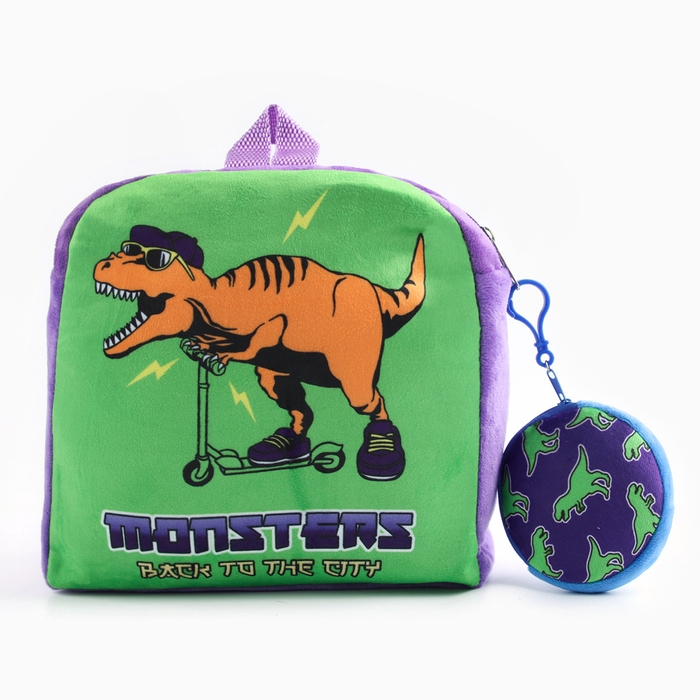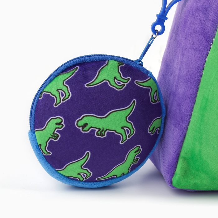 Рюкзак детский плюшевый с кошельком "Динозавр", 24*24 см, цвет фиолетовый