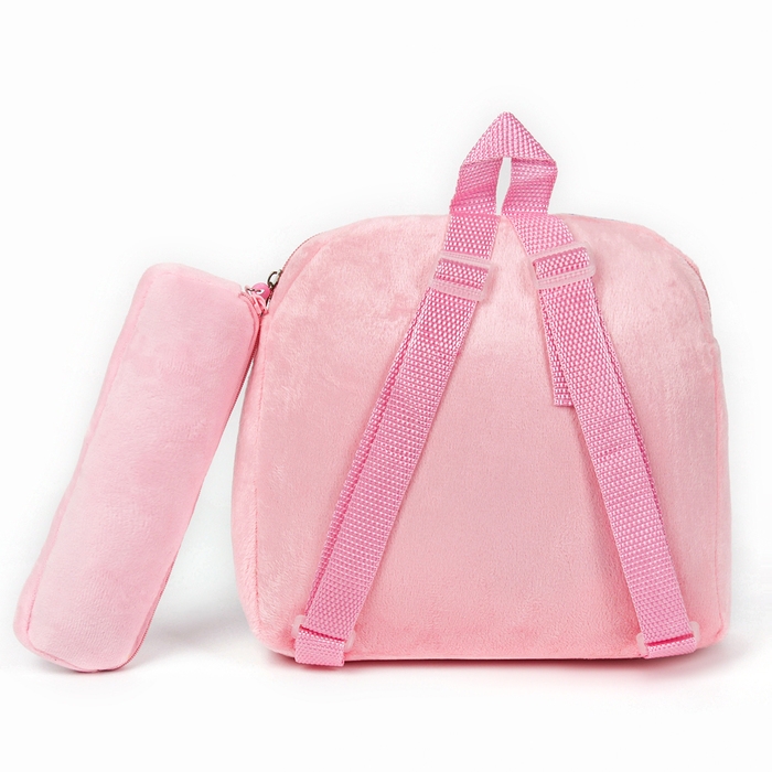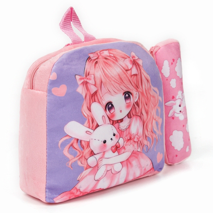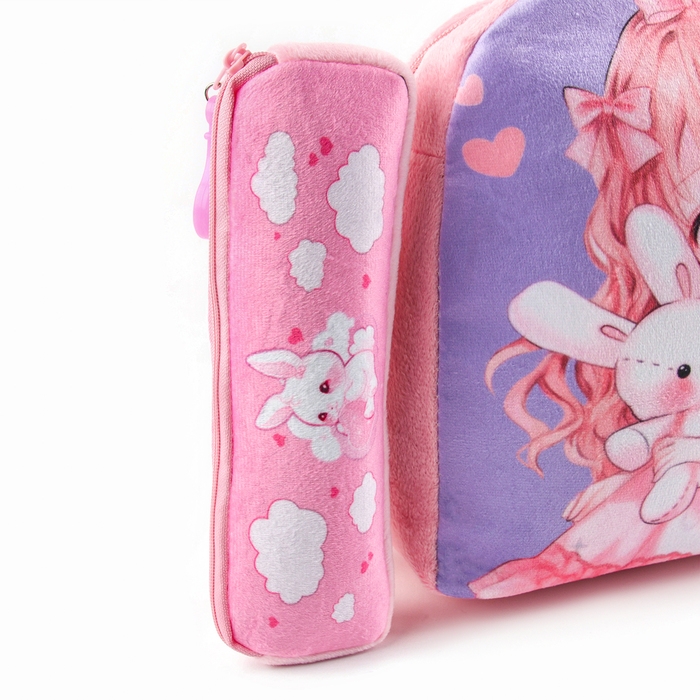 Рюкзак детский плюшевый с пеналом "Аниме девочка", 24*24 см, цвет розовый
