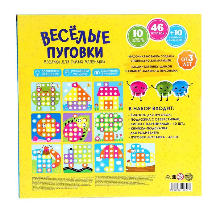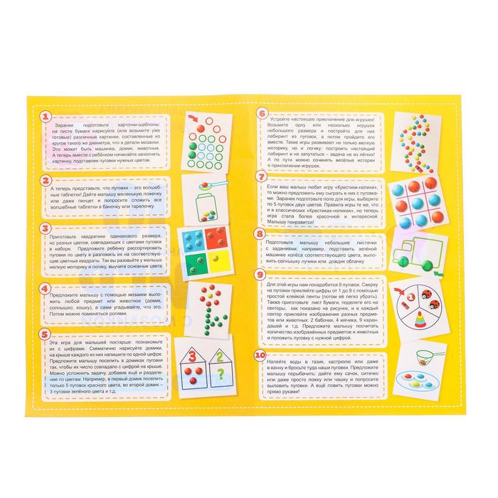 Настольная игра на логику «Весёлые пуговки», мозаика, 46 пуговок, 10 картинок-шаблонов