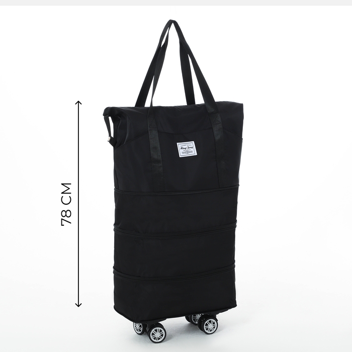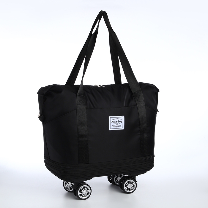 Сумка дорожная 20" на съемных колёсах, отдел на молнии, с увеличением, 3 наружных кармана, держатель для чемодана, цвет чёрный