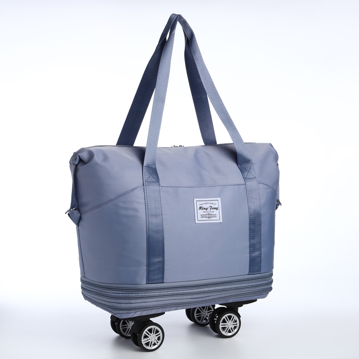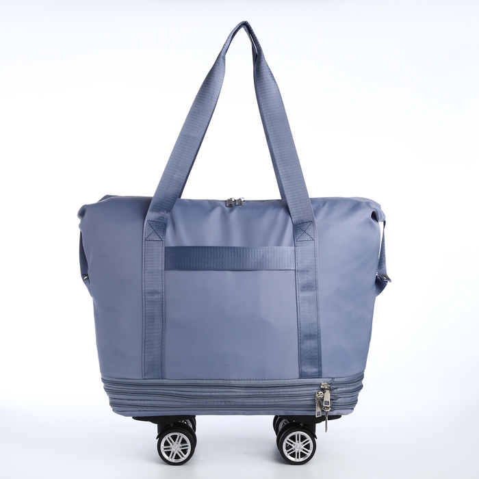 Сумка дорожная 20" на съемных колёсах, отдел на молнии, с увеличением, 3 наружных кармана, держатель для чемодана, цвет голубой
