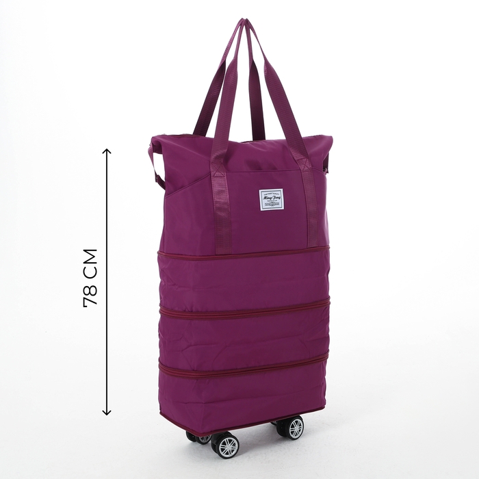 Сумка дорожная 20" на съемных колёсах, отдел на молнии, с увеличением, 3 наружных кармана, держатель для чемодана, цвет фиолетовый