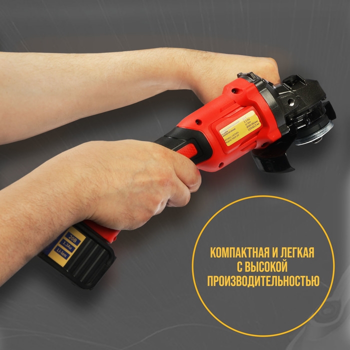 Аккумуляторная УШМ ТУНДРА, 20 В, 1.3 Ач, Li-Ion, 8500 об/мин, 125 х 22.2 мм