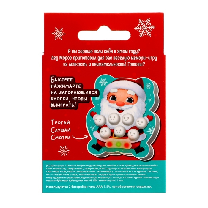 Игра способствует развитию моторики, координации движений и быстроты реакции у детей. Световые и звуковые эффекты делают процесс игры увлекательным и интересным. Пластиковый корпус обеспечивает долговечность и безопасность при использовании.