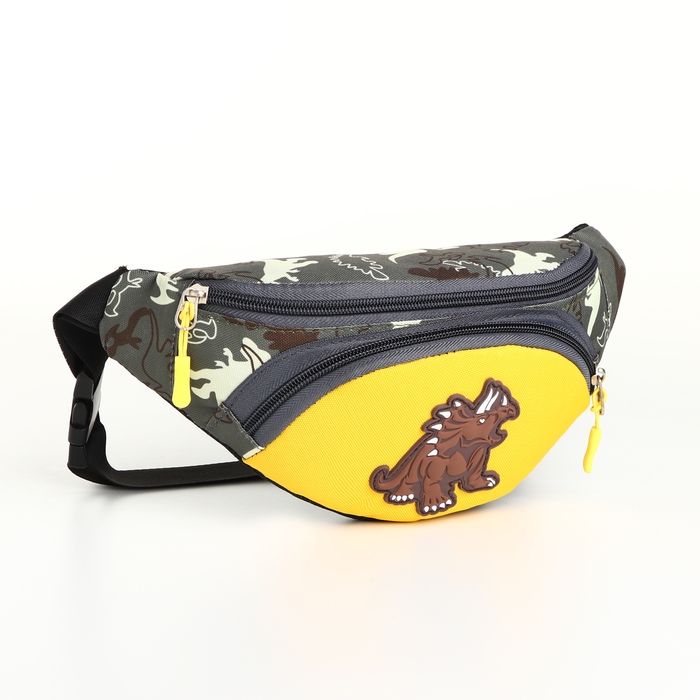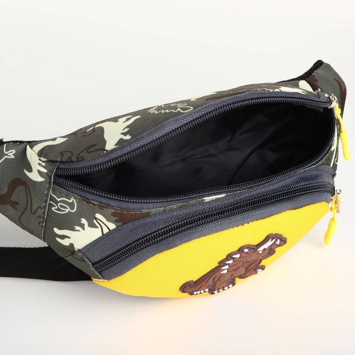 Сумка поясная детская на молнии, цвет зелёный/жёлтый