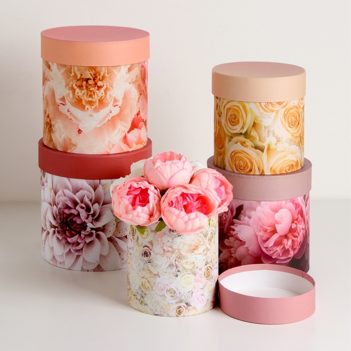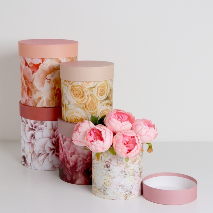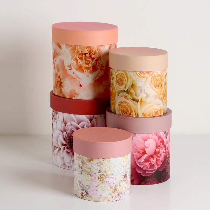 Набор шляпных коробок 5 в 1" Нежность" , 23 х23 - 15 х 15 см