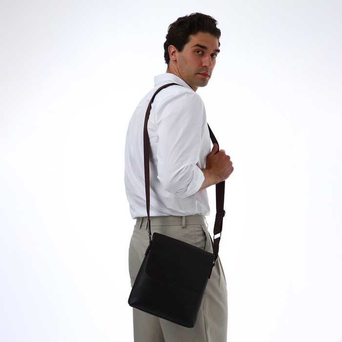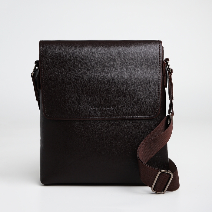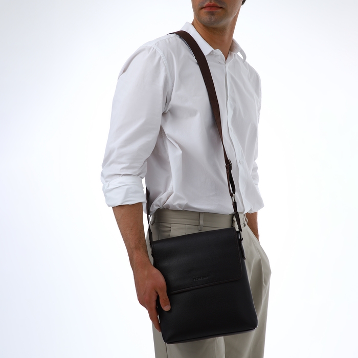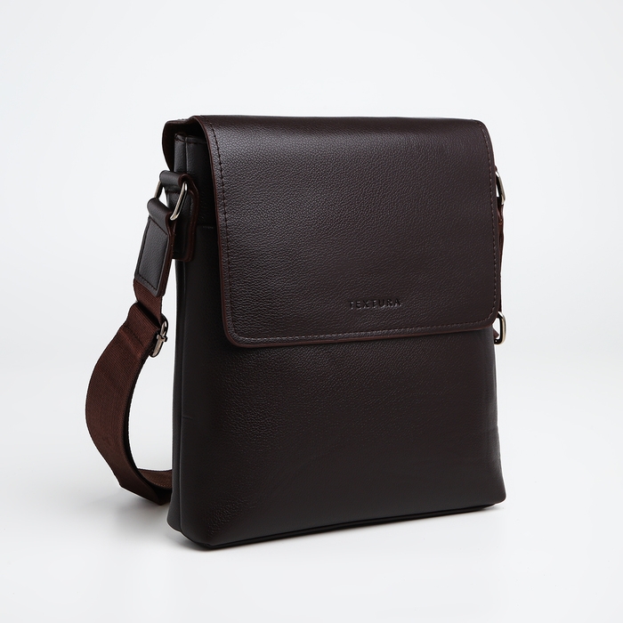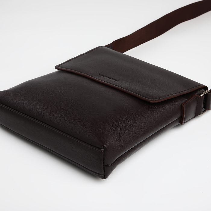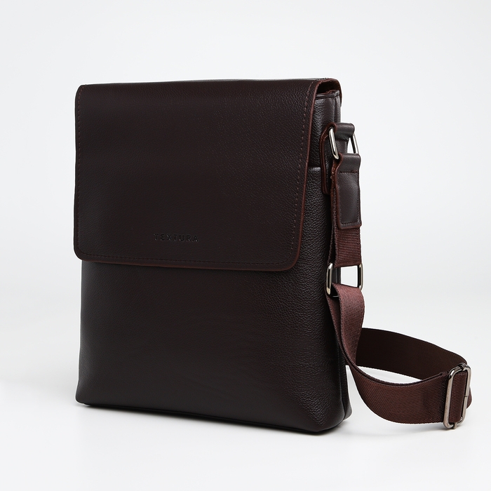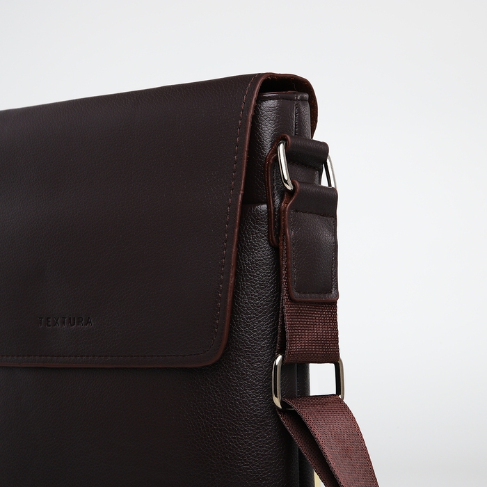 Сумка мужская через плечо TEXTURA, наружный карман, цвет коричневый