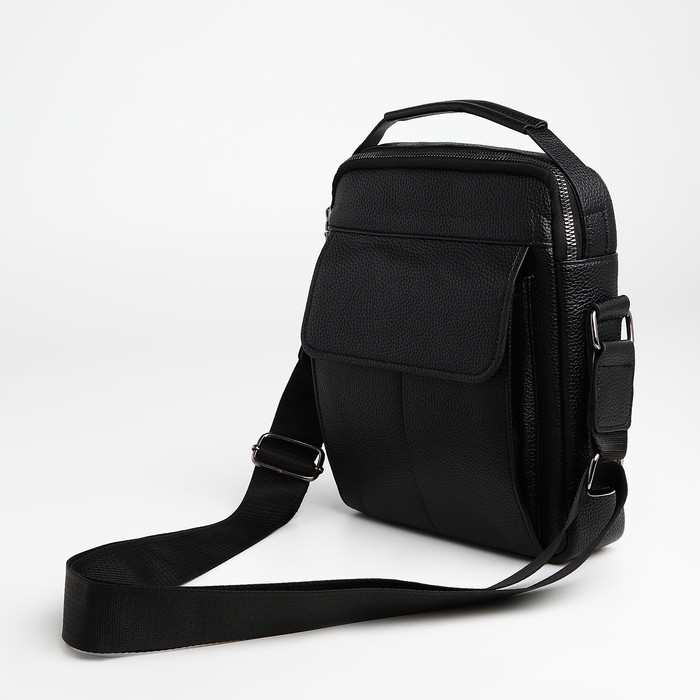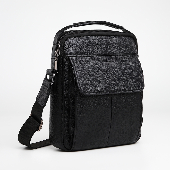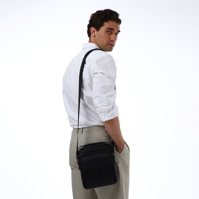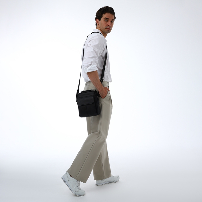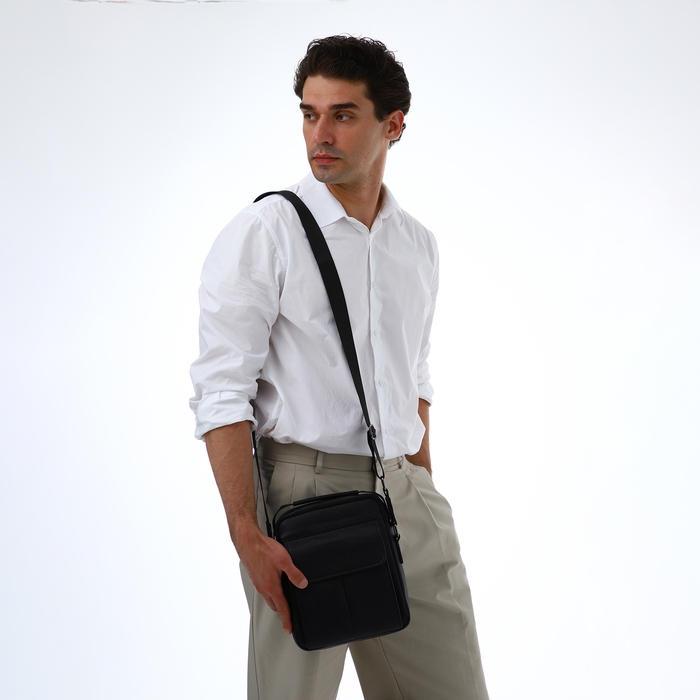 Сумка мужская через плечо TEXTURA, 2 наружных кармана, цвет чёрный