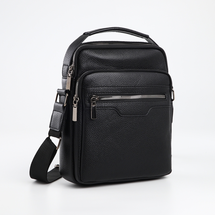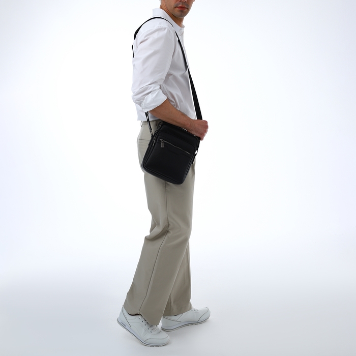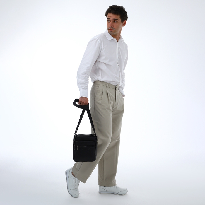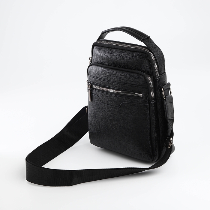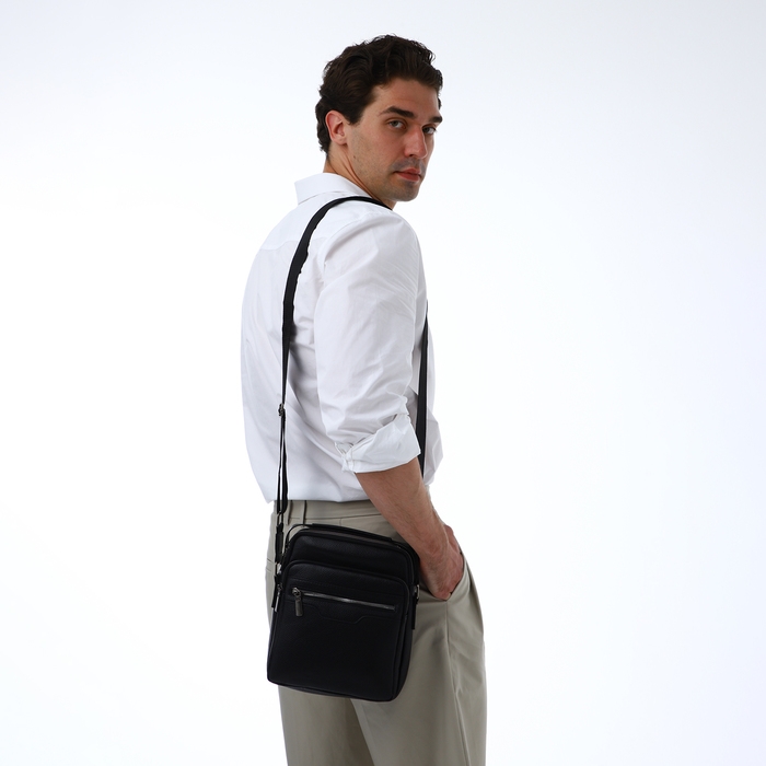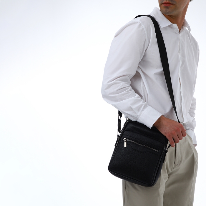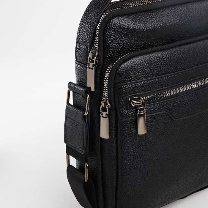 Сумка мужская через плечо TEXTURA, 3 наружных кармана, цвет чёрный