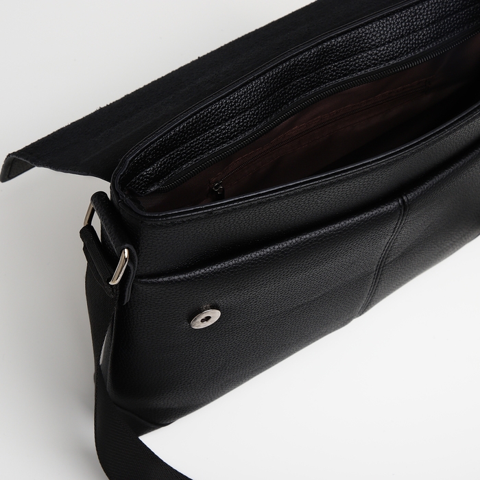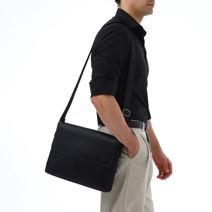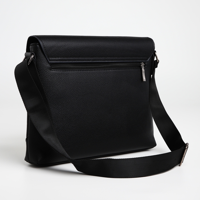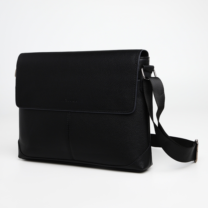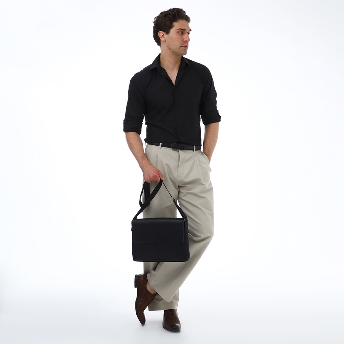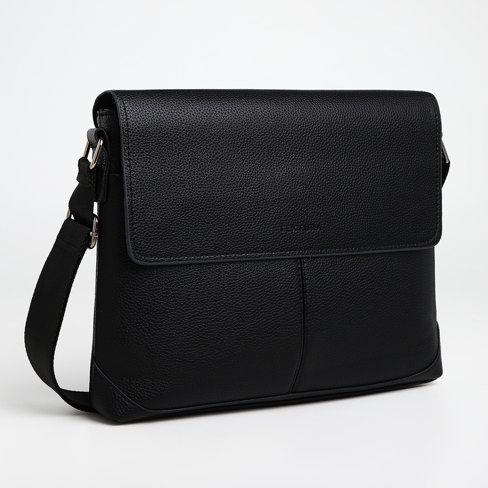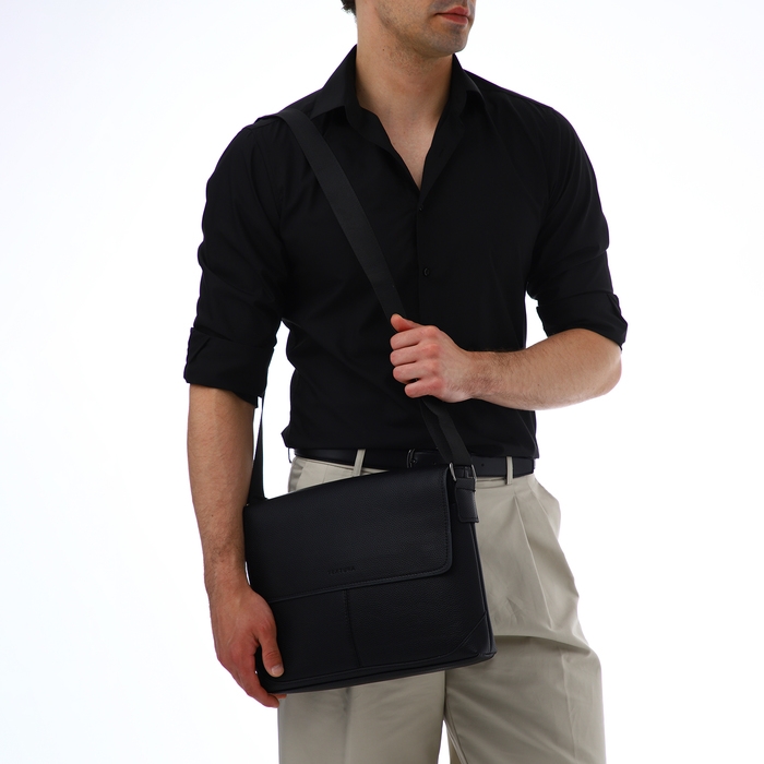 Сумка мужская деловая TEXTURA, 2 наружных кармана, цвет чёрный