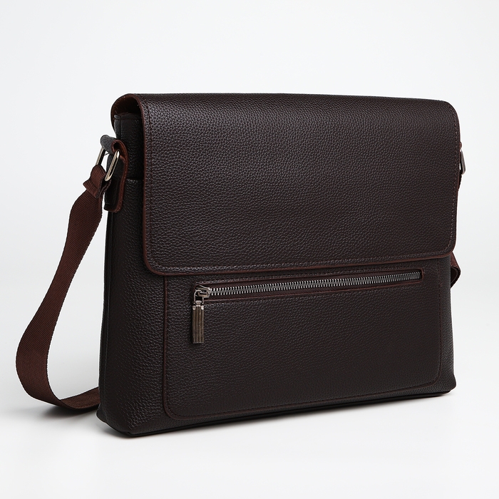 Сумка мужская деловая TEXTURA, длинный ремень, цвет коричневый